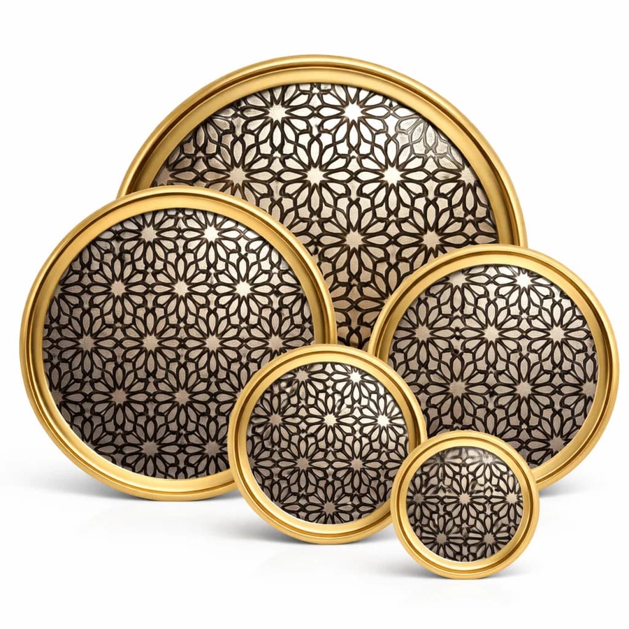 صينية كبيرة بتديك تقديم مرتب وفخم في الضيافة والمناسبات. مصنوعة من ستانلس ستيل متين نحاسي يضيف لمسة أناقة على السفرة وركن القهوة. مقاس 35 سم مناسب لتقديم أكتر من فنجان مع الحلويات/التمر في مرة واحدة وعملي جدًا للاستخدام اليومي لأنه سهل التنظيف ويحافظ على شكله مع الوقت. اختيار ممتاز للبيت وكمان كهدية شيك.