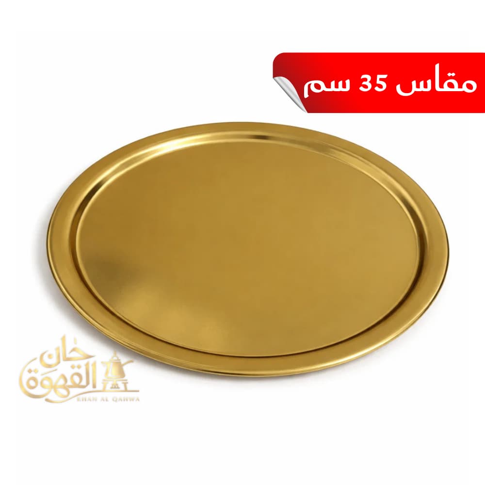 صينية سادة ستانلس لون نحاسي مقاس 35 سم ، مثالية للضيافة الكبيرة وتقديم القهوة والشاي بشكل فخم وسهلة التنظيف. توصيل سريع لكل مصر