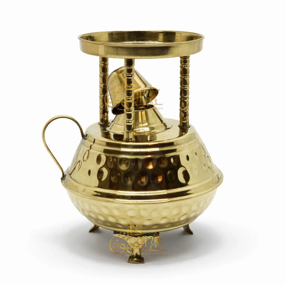 طقم قهوة نحاس سادة مخصص بحفر اسمك. يشمل سبرتاية الهرم، كنكة كبيرة، 2 فنجان، وملعقة مع صينية 30 سم. شحن مجاني وفانوس هدية. اطلبه الآن بتصميمك الخاص!