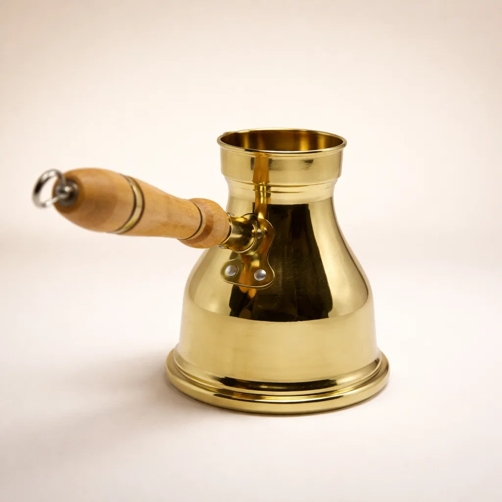 لما الضيافة تكتر وتحب تقدم قهوة مظبوطة بسرعة وبشكل شيك، كنكة النحاس دي هتكون حل عملي وفخم. مصنوعة من نحاس صافي ونقي 100% وبـ تصنيع هاند ميد بتشطيب راقي يديها قيمة وجودة واضحة. مقاس 4 فنجان مناسب للعيلة والضيوف، واليد الخشبية بتدي مسكة مريحة وتساعد على العزل أثناء التحضير. تصميم سادة أنيق يليق بأي مطبخ وبيكمل طقم الضيافة النحاسي بشكل مميز ، وكمان اختيار ممتاز للهدايا.