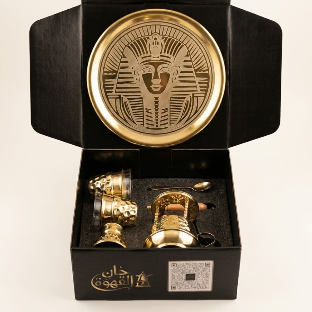 تحفة فنية تزين جلسات القهوة! لكل من يعشق التفاصيل العربية العريقة، يقدم لكم هذا البوكس تجربة بصرية ومذاقية لا تُنسى. طقم متكامل مزين بالكامل بنقوش يدوية بارزة تحول ركن القهوة عندك إلى ركن تراثي فاخر.